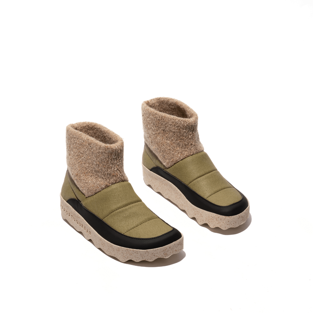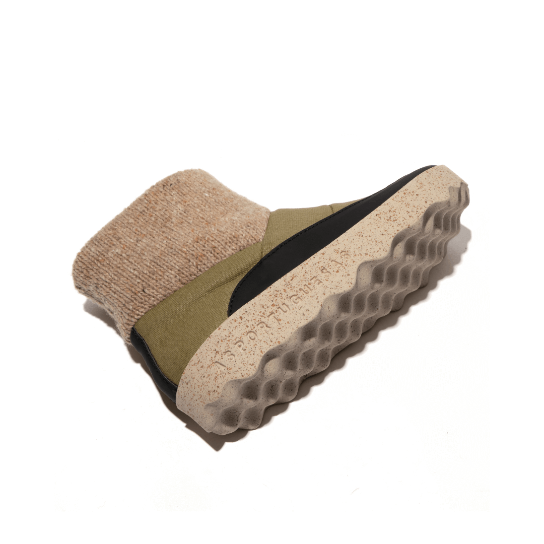 Divertidas e elegantes com estas botas de bico redondo de poliéster reciclado da moda para mulheres. Criado por Asportuguesas Materiais: Algodão encerado Forró: Palmilha:Microfibra Sola:Cortiça Altura do salto:3cm