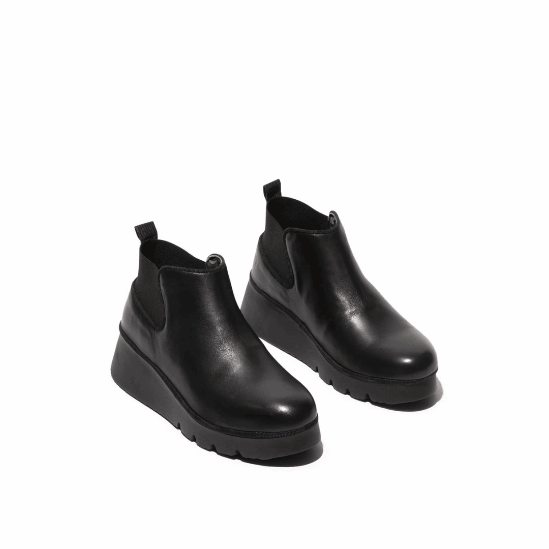 Dê ao seu look um estilo extra com estes botins elásticos de couro para mulheres. Criado por Fly London