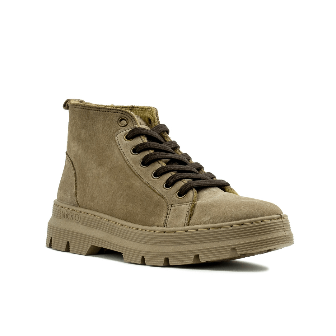 Nossas botas Eda reúnem os fatores mais valiosos do Mundo Natural: qualidade, conforto, consciência ecológica e design. As botas Eda para mulheres foram criadas para quem prefere conforto, mas não quer deixar de estar na moda. Perfeito para todos os tipos de looks, essas botas são feitas de materiais 100% ecológicos, combinando estilo e sustentabilidade. A parte superior dessas botas de inverno é feita de couro e a sola é de borracha natural. Não há nada mais confortável do que essas botas de inverno. Como parte da nossa filosofia de marca, os sapatos vêm em uma caixa de papelão reciclada, algo essencial para quem quer contribuir positivamente para o meio ambiente. Não pense mais e pegue suas botas de inverno na Natural World Eco   • Altura dianteira de3 cm e sola traseira de 4 cms • Palmilhas removíveisEstes sapatos envolvem um processo de fabricação em um tecido natural, de modo que qualquer irregularidade é parte de sua característica.