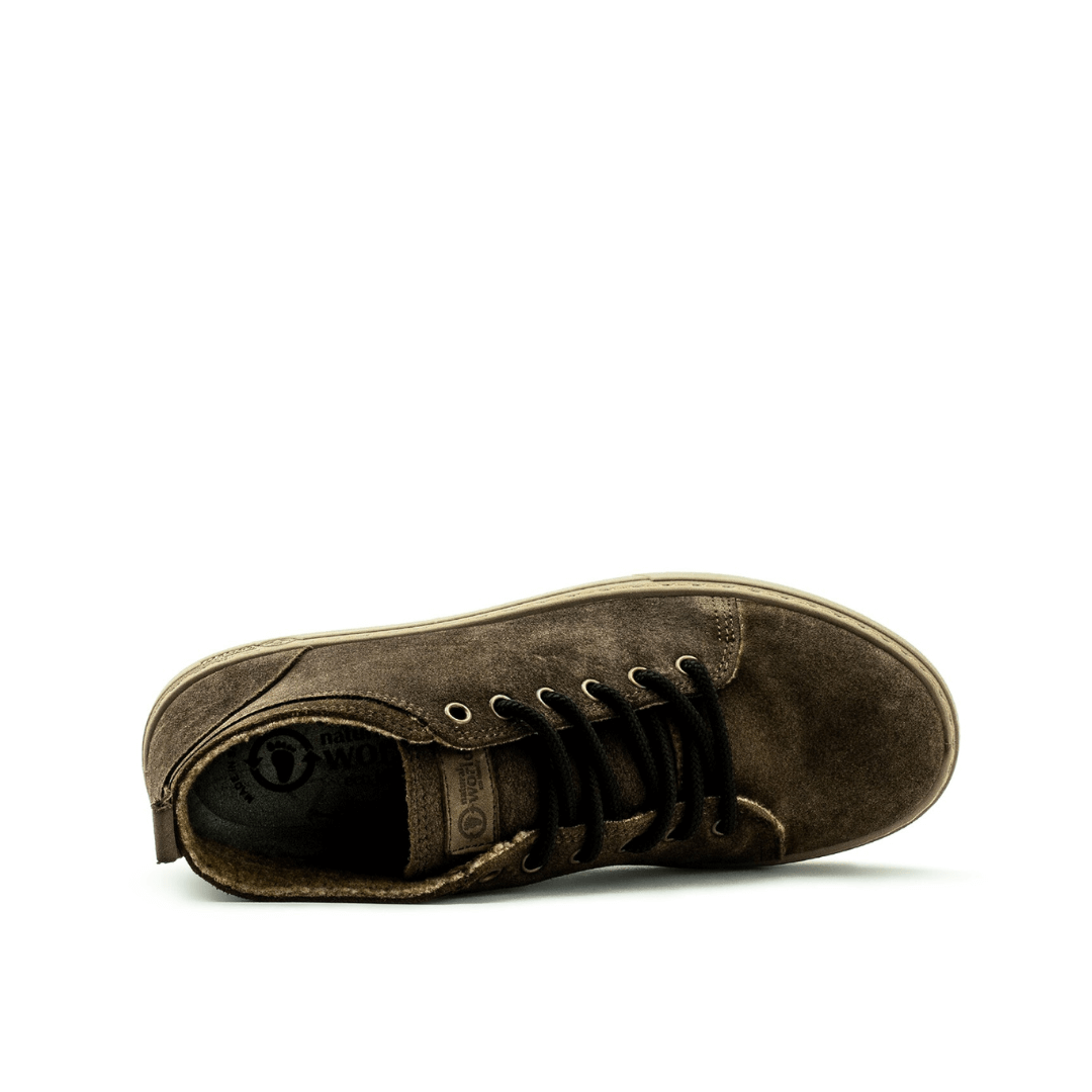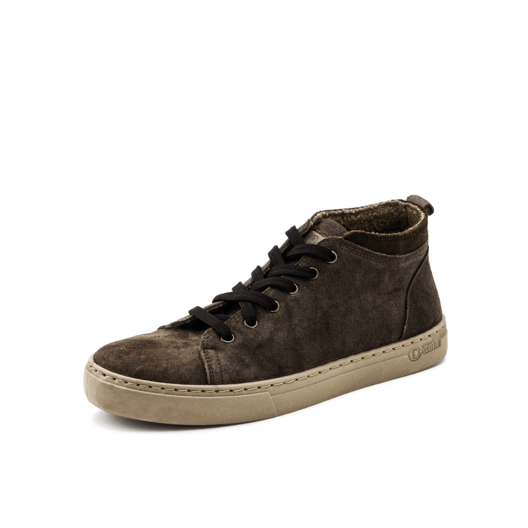 Na Natural World Eco cuidamos de cada detalhe para obter qualidade, conforto, consciência ecológica e moda em nossos calçados. Nossa bota Adel é perfeita para aqueles homens que buscam conforto sem abrir mão do estilo. Estas botas de inverno são feitas de couro de camurça e o interior é revestido com lã, a escolha perfeita para o inverno! A sola das botas Adel é feita com ruber natural. Como todos os sapatos Natural World Eco, eles são feitos na Espanha e vêm em uma caixa de papelão reciclado.   •Altura 2,6 cms • Palmilhas removíveis