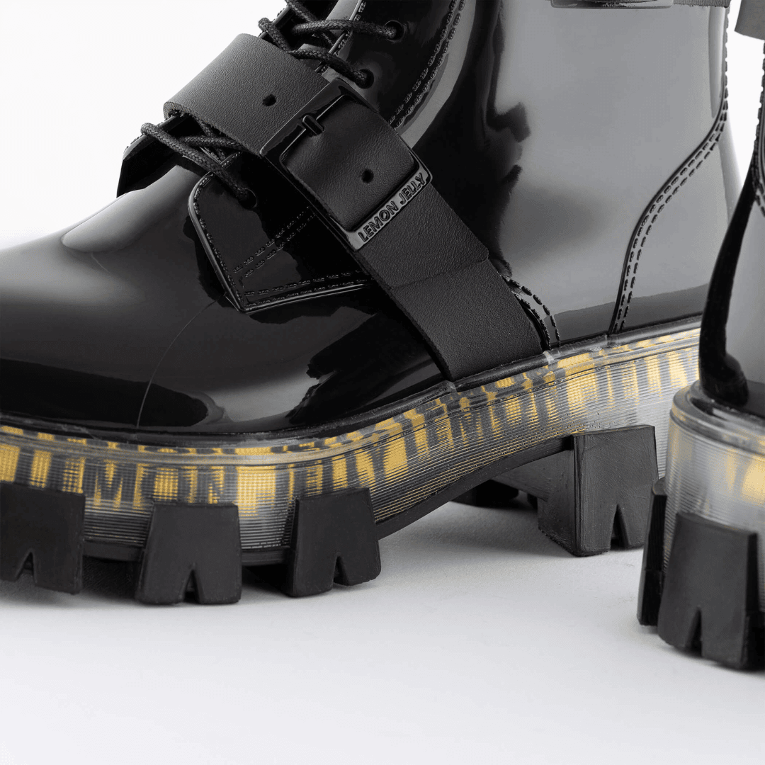 Umas botas pretas femininas que se afirmam como um must-have no teu guarda roupa este outono-inverno. Não deixes que o pormenor transparente da sola passe despercebido e sente no ar o aroma a limão. Dá poder ao teu look com um casacão e jeans.