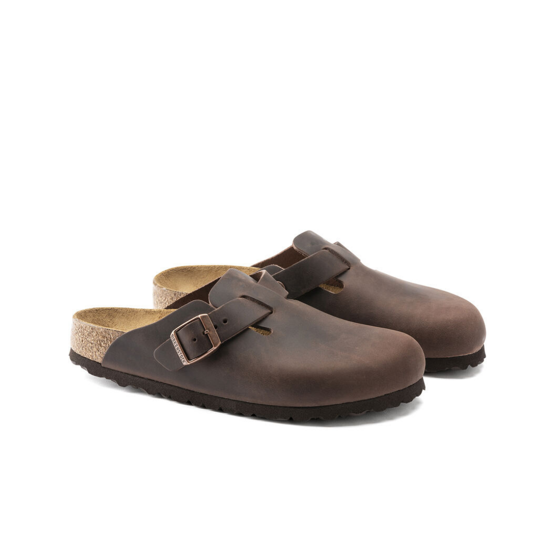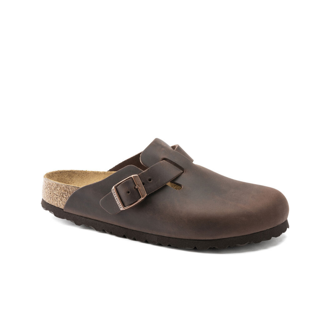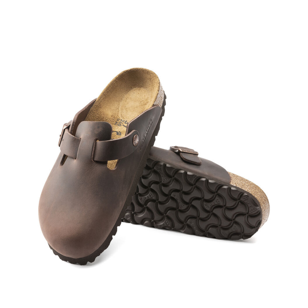 O BIRKENSTOCK Boston é um verdadeiro clássico que pode ser facilmente usado durante todo o ano. Com seu design sofisticado e individualmente ajustável, o Boston há muito desfruta de status lendário. O material superior consiste em couro nubuck particularmente espesso e oleoso, que foi processado de borda aberta.