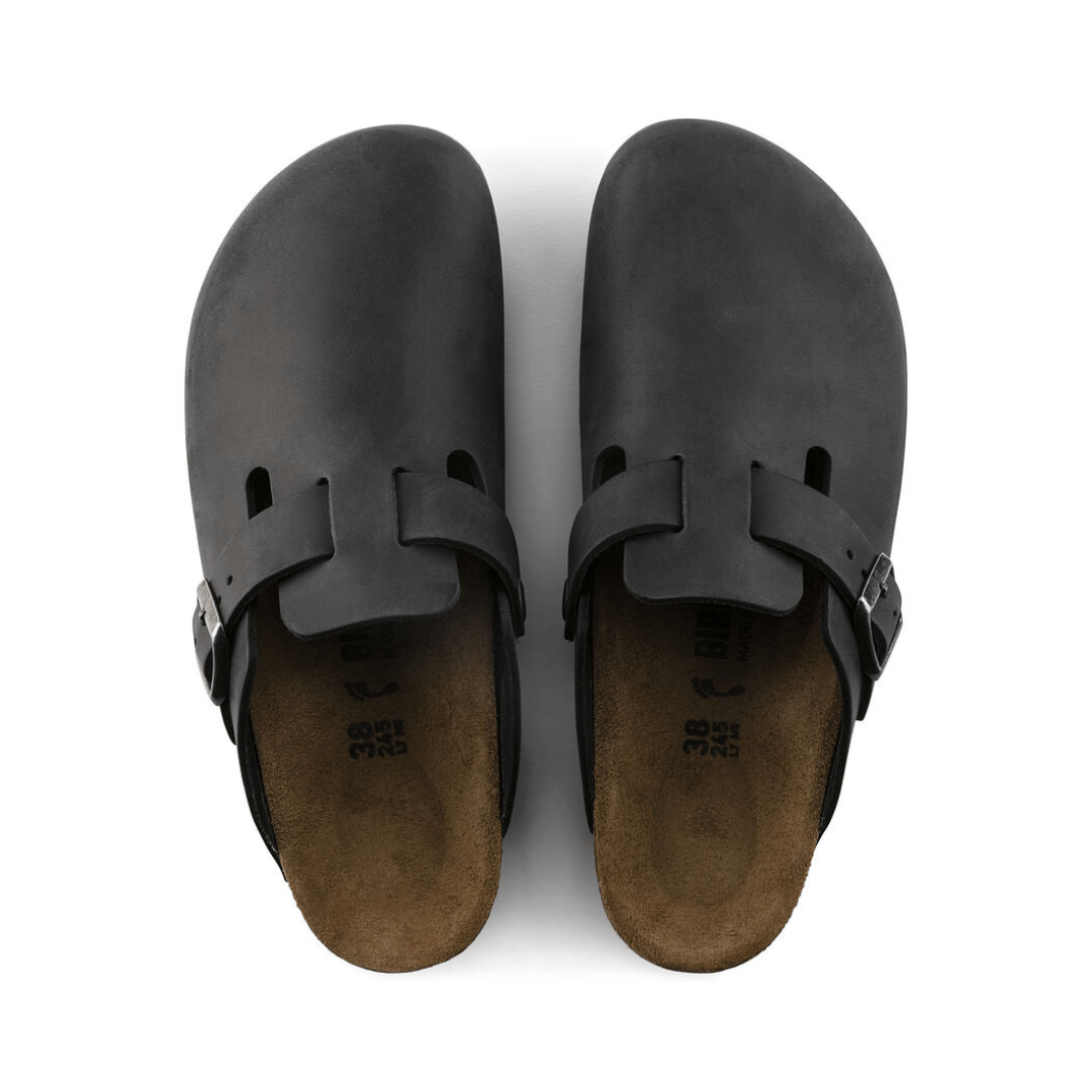 O BIRKENSTOCK Boston é um verdadeiro clássico que pode ser facilmente usado durante todo o ano. Com seu design sofisticado e individualmente ajustável, o Boston há muito desfruta de status lendário. O material superior consiste em couro nubuck particularmente espesso e oleoso, que foi processado de borda aberta.