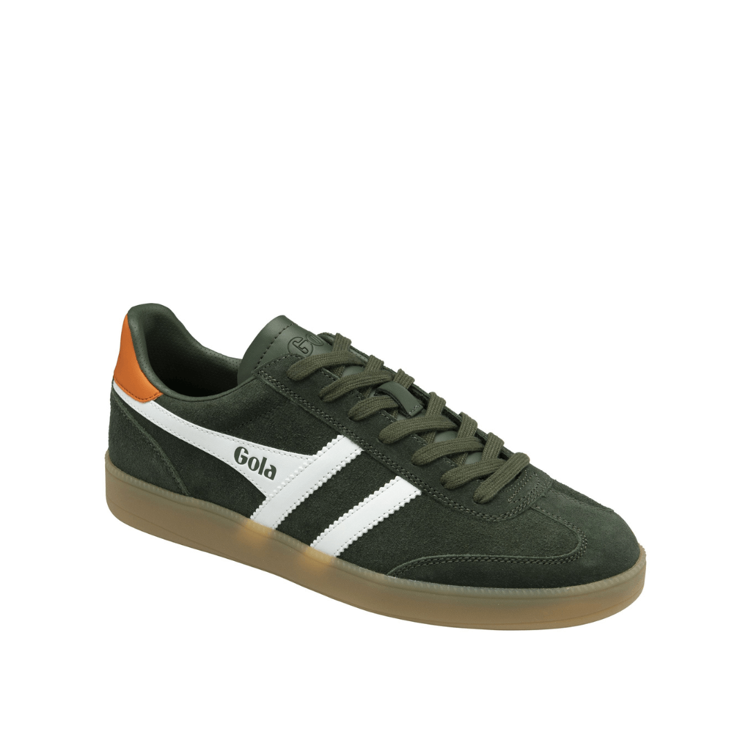 Apresentando o couro Viper à coleção masculina Gola Classics. Este tênis de sola de copo atualizado, inspirado no estilo casual de terraço dos anos 70, exala apelo atemporal com o acabamento de sola de goma. O acabamento em folha de asa Gola em folha perene contrastante realça o cabedal de couro branco nítido, dando-lhe uma estética fresca. Viper Leather é uma escolha confiável para um tênis estiloso.