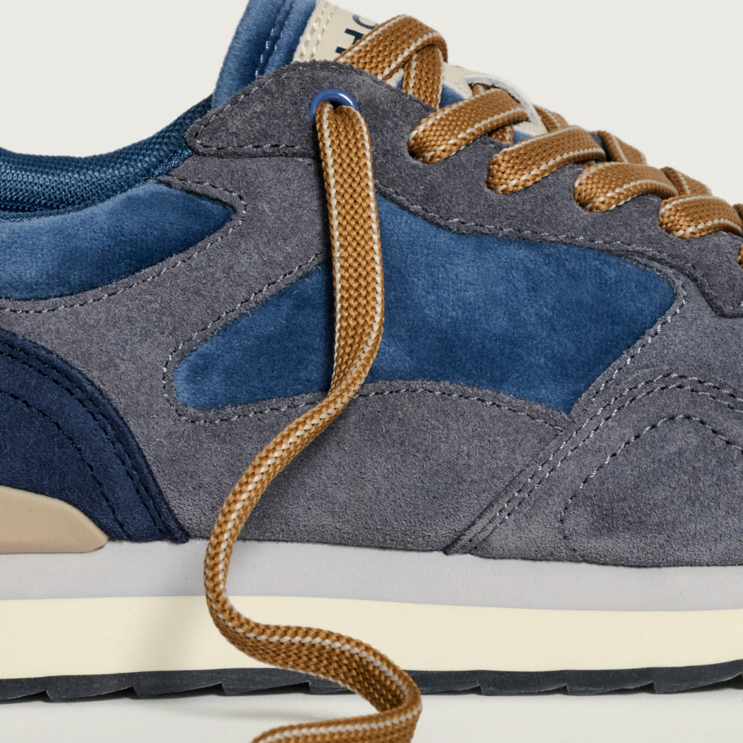 Sapatilha de estilo retro numa combinação de cores e materiais. Detalhe do logotipo na parte de trás. Sola estampada. Fechamento por cadarço. Composição : CABEDAL: 70% couro, 30% nylon. SOLA: 80% EVA, 20% TPR. PALMILHA: Espuma de memória. FORRO: 100% têxtil.